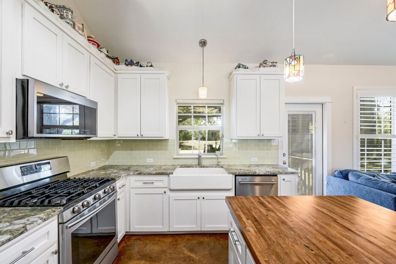 This cozy home sits on .42 acre lot in a Voluntary HOA, with numerous trees, and a 2-car garage,. An open floor plan with high ceilings and tons of natural light. The kitchen is complete with granite countertops, shaker style cabinetry, a tile backsplash, and a butcher block countertop on the center island. The primary bath offers separate vanities, a walk-in shower, and a spacious walk-in closet. The backyard comes with a unique treehouse, outdoor area, including a pizza oven and firepit, perfect for entertaining. An air-conditioned, standalone office/art studio is located at the back of the property. Zoned for the highly rated Lake Travis ISD! The HOA gives you access to the lake and a playground. This house is easy access to Dripping Springs and Lake Travis.