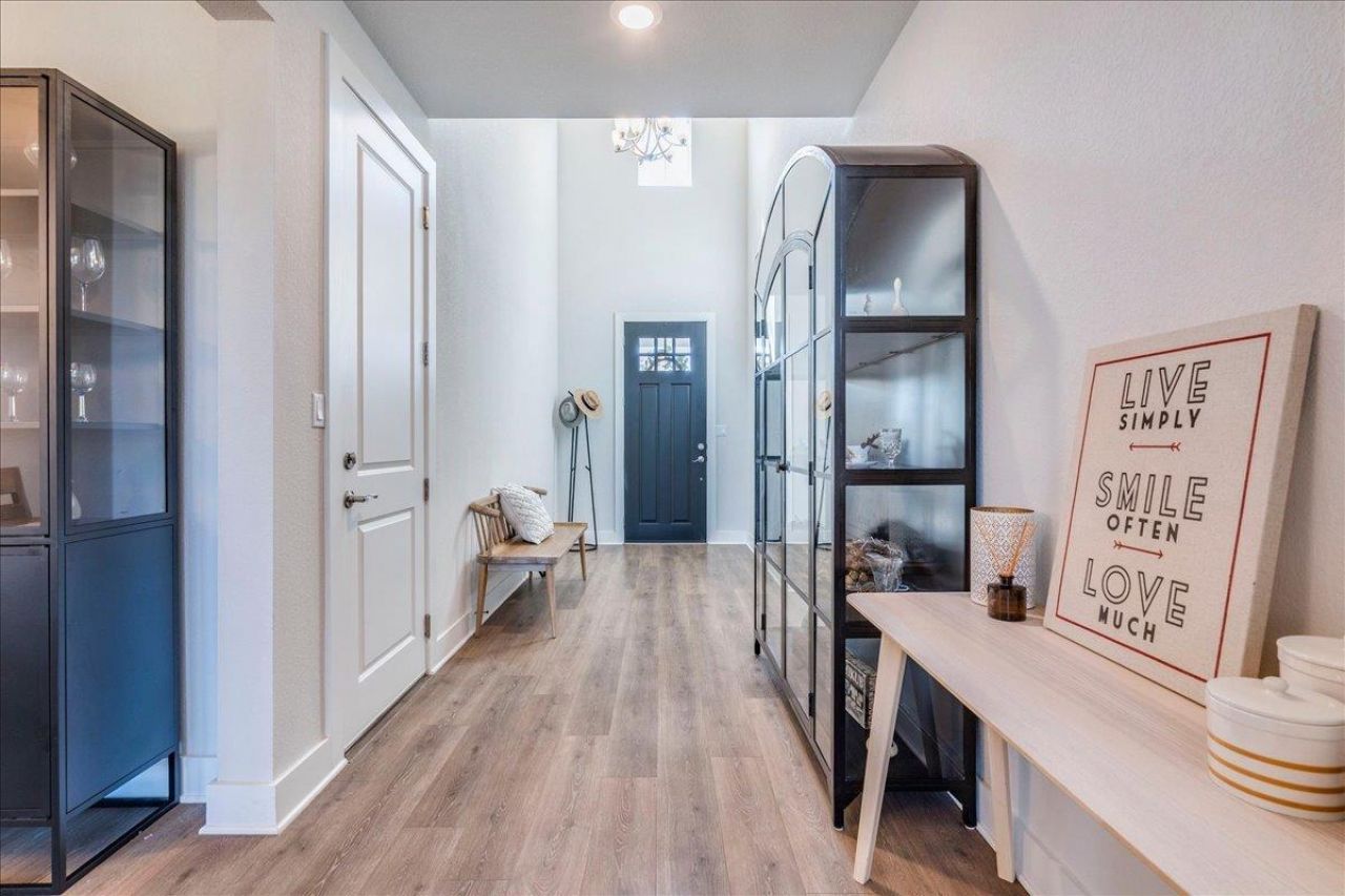 Set on a quiet street in Dripping Springs premier Headwaters community, this open-concept 5-bedroom, 4-bathroom home blends elevated design with easy Hill Country living in top-rated Dripping Springs ISD.A dramatic foyer with soaring ceilings and a sweeping curved staircase opens to a light-filled living area anchored by a marble-accented fireplace and expansive windows framing serene greenbelt views. The chefs kitchen centers around an oversized island with stainless steel appliances and a bright breakfast nook overlooking the backyard.The main-level primary suite is a private retreat with a spa-like bath featuring dual vanities, soaking tub, glass-enclosed shower, and generous walk-in closet with attached laundry room. The main-level also features a second bedroom with a dedicated bathroom, perfect for older guests or use as a home office.Upstairs, three additional bedrooms are thoughtfully positioned to offer flexibility for family, guests, or additional office space, complemented by an expansive game room and adjacent media room for entertaining and play.Outdoors, a covered patio and level backyard back to the greenbelt for added privacy, while a three-car garage and tankless water heater enhance everyday comfort. Headwaters residents enjoy resort-style amenities?including a modern clubhouse, fitness center, split-level pool, and miles of trails?as well as a dedicated elementary school (Wildwood Springs) and close proximity to Oakwood Public Market and all that Dripping Springs has to offer.