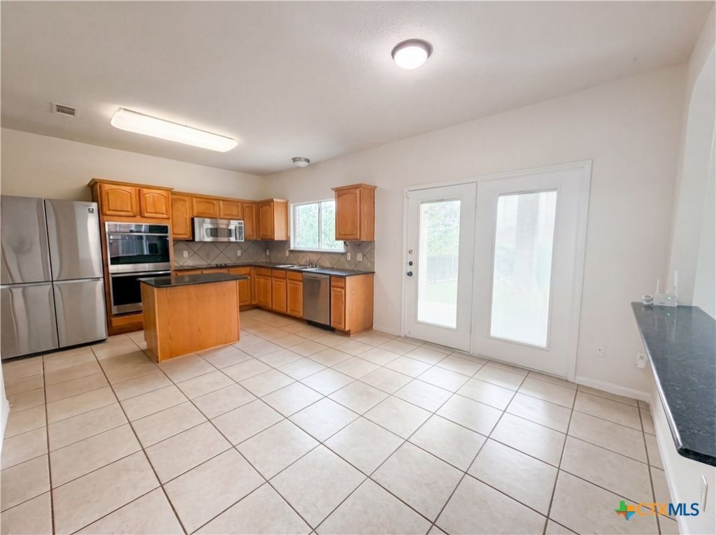 Introducing 118 W Running Wolf Trl, a residence recently improved with fresh exterior paint and updated interior elements. A cozy fireplace complements the living area, while the kitchen contains all stainless steel appliances, an accent backsplash, and a functional island. The primary bathroom has a separate tub and shower along with double sinks for convenience. Outside, a covered patio extends to a fenced in backyard, which also includes a storage shed. This property combines thoughtful updates with practical outdoor living.