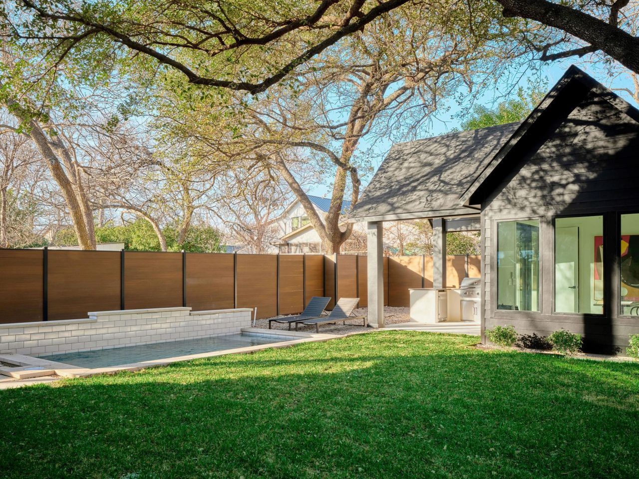 1300 Piedmont delivers elevated living in the heart of Crestview on a quiet interior street. This 5-bedroom, 5-bathroom residence spans 2,919 sq ft and includes a detached casita with a full bath, perfect for guests or a private workspace. Expansive windows and premium sliders flood the home with natural light, showcasing high-end finishes and a sleek fireplace. The chef-inspired kitchen flows seamlessly to the living and dining areas, creating an ideal space for gatherings. Outside, a large yard with a pool, outdoor kitchen, and multiple decks creates the ultimate setting for entertaining. Additional features include a 1-car garage, thoughtful storage solutions, and multiple outdoor lounging areas that capture the serene surroundings. A rare blend of luxury and thoughtful design in one of Austins most sought-after neighborhoods, this home truly defines modern, sophisticated living.