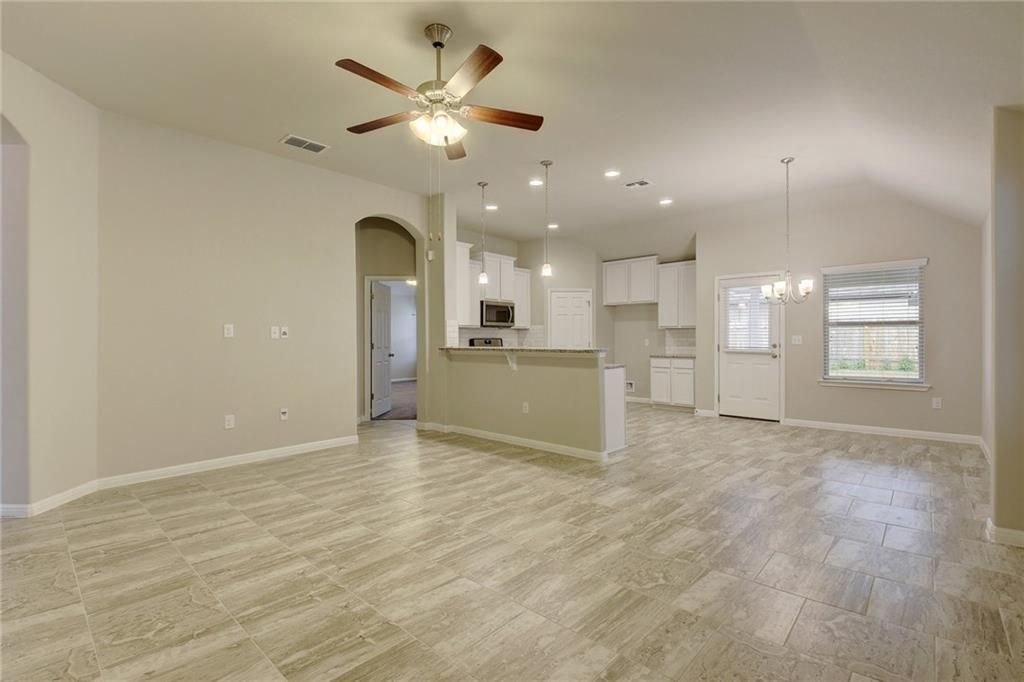 This 1 story 3-bedroom 2 full bathroom home with 2 car garage, sprinkler system and covered back patio is ready for immediate move-in. Meticulously maintained and in great condition, this home is truly turnkey and offer 42 White custom cabinets, 17x17 Tile flooring, white subway backsplash with a modern gray & white scheme. The inviting layout & open design features multiple living spaces perfect for entertaining, working from home, or hosting guests. Enjoy gorgeous sunsets while relaxing on your front porch, while the private backyard provides a peaceful retreat for relaxing evenings or weekend gatherings. In ground sprinkler system for easy yard maintenance. Located just a walk away from our communitys beautiful greenbelt trail (Bear Creek) and our community Lagoon Style Pool. Residents enjoy access to desirable neighborhood amenities and nearby parks, along with highly regarded local schools?all while being only minutes from Austins dining, music, and employment hubs. **If you see this before it is delivered, a Refrigerator is included and being delivered soon**