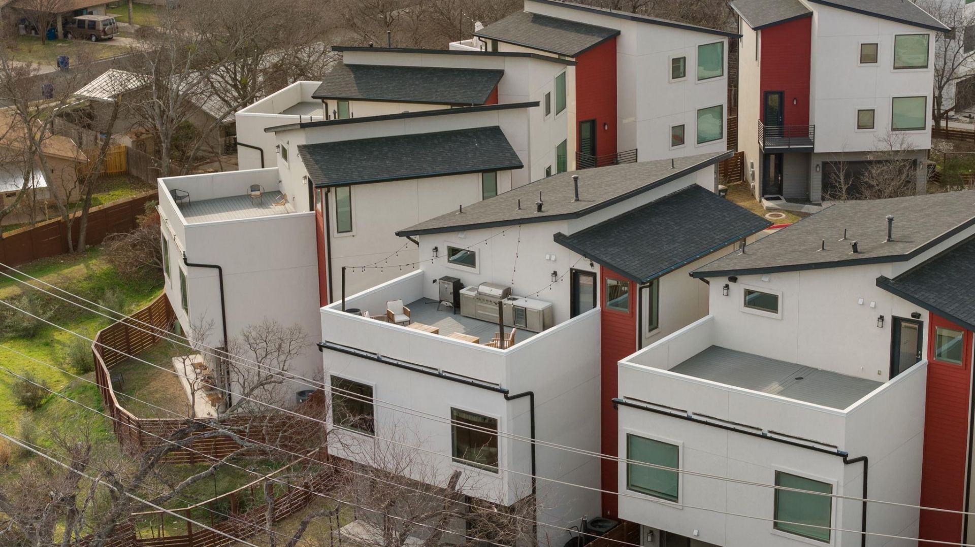 Freestanding three-story townhome with no shared walls, a private yard, and a rooftop deck featuring a full outdoor kitchen.1417 Kramer Lane offers 2,600 square feet of thoughtfully designed living space in one of North Austins most convenient locations. Unlike many surrounding units with common walls, this home stands independently, providing natural light on all sides and a true sense of privacy.The first floor includes a two-car garage along with a fully enclosed bedroom and full bath, ideal for guests, a home office, or flexible living.The second level anchors the home with an open-concept kitchen and living area designed for entertaining, complete with Bosch appliances, generous counter space, and seamless flow to a private balcony. An additional bedroom and full bath are also located on this level.The third floor is dedicated to the primary suite, creating a private top-level retreat. From this level, interior stairs lead directly to the rooftop deck, where a full outdoor kitchen setup includes a built-in grill, sink, and refrigerator. Gas and water connections are already in place, making this space ideal for entertaining.The yard is larger than any comparable units in the community, offering usable outdoor space for pets or gatherings.Additional features include automated blinds throughout, smart thermostats, programmable smart locks, low-voltage pre-wiring for in-ceiling speakers, and a true two-car garage.Located minutes from Q2 Stadium, The Domain, and major employers, this is one of the most private and well appointed offerings currently available for the area.