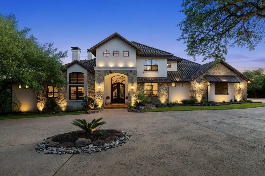 Lakehaven is an 8-acre private estate anchored above Lake Georgetown, where unobstructed Hill Country views, Old World European architecture, and mesmerizing sunsets converge on one rare piece of land.Custom-built in 2008, this 5,218 sq ft, 5-bedroom, 4.5-bath residence was oriented to capture its southwestern exposure. Mornings begin with coffee as light pours through soaring arched windows; evenings end with the sky on fire over the lake. Warm solid hardwoods, rich custom cabinetry, and granite countertops carry the craftsmanship throughout. The sunken main living area is grounded by a floor-to-ceiling stone fireplace beneath 2-story ceilings, with a wall of windows turning the back of the home into a living canvas. In the adjacent sitting area, accordion sliders fold away entirely, erasing the line between inside and the covered patio beyond.The island kitchen was built for gathering, framed by a wrap-around bar, dining extension, high-end built-in appliances, butler's pantry, walk-in pantry, and ample storage. Steel and glass arched doors open to a grand rotunda foyer and formal dining room where long dinners linger. A climate-controlled wine cellar waits nearby for the bottle the evening calls for.Retreat to the main-level primary suite, centered on a custom fireplace and bay windows, and unwind in the ensuite's freestanding soaking tub. Dual vanities, two walk-in closets, and a walk-in shower make everyday rhythms effortless. A grand study with its own stone fireplace and wall-to-wall built-ins offers a place to think. Upstairs, three bedrooms and a media room open to a covered veranda framing the night sky.Outside, the infinity pool and spa dissolve into the treetops. Dinners move to the pergola, evenings circle the fire pit, weekends spill onto the sport court. The covered patio, warmed by its own stone fireplace, is where sunsets ignite the sky in amber and rose. Army Corps-protected shoreline keeps these views permanently yours.