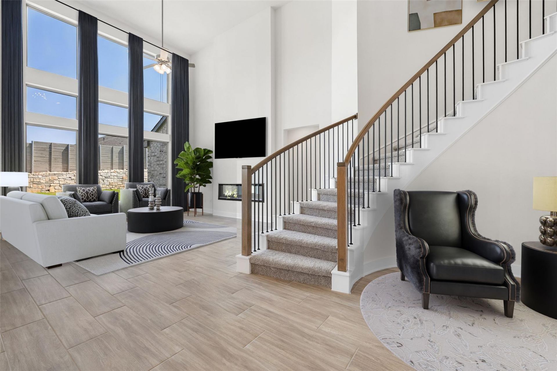 Westin Homes NEW Construction (The Wimberly II - A) in highly sought after Wolf Ranch. 3 CAR GARAGE. Gorgeous 2-Story Rotunda Entry with Wrought Iron Circular Staircase. Gourmet Open Island Kitchen with Quartz Countertops, 42 Tall Kitchen Cabinets with Uppers & Built-In Stainless Steel Appliances. Family Room with High Ceilings & Wall of Windows. Large Covered Patio. Private Primary Suite Down with Luxurious Bath Featuring Double Vanity Sinks with Quartz Countertops, Large Walk-in Shower & Free-Standing Tub. Guest Suite with private bath on First Floor. Study with Double Doors. Upstairs features Media Room, Game Room & 2 Beds / 1 Full Baths. Smart Home Package. Tray Ceilings, Architectural Details and more!