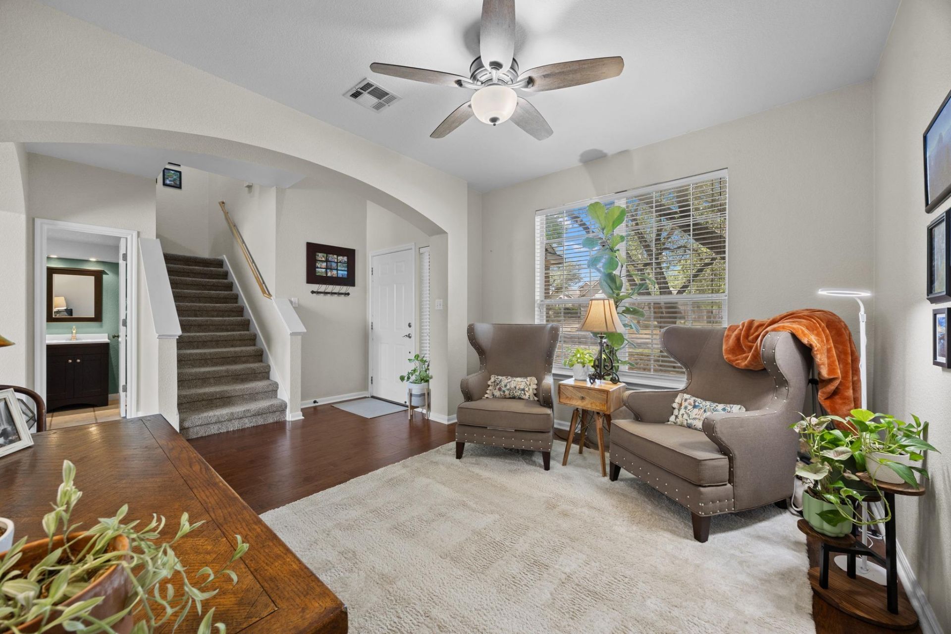 Welcome to 17833 Madden Dr, a well-maintained two-story home in the established Springbrook Glen community of Pflugerville. Offering 3 bedrooms, 2.5 bathrooms, and approximately 1,942 square feet of living space, this home combines functionality, comfort, and outdoor space on a generously sized lot.The main level features an inviting layout with multiple dining areas, a spacious living room, and a kitchen that opens seamlessly to the main living space, ideal for both everyday living and entertaining. The kitchen includes ample storage, pantry space, and a breakfast area filled with natural light. High ceilings and an open foyer create a bright and welcoming first impression.Upstairs, all bedrooms are thoughtfully positioned, including a spacious primary suite with high ceilings, a walk-in closet, and a well appointed bathroom featuring dual vanities, a garden tub, and a separate shower. Secondary bedrooms offer flexibility for guests, home office use, or additional living needs.Step outside to enjoy a private backyard with mature trees, sprinkler system, and a covered patio, perfect for relaxing or hosting. Additional features include an attached 2-car garage, wood fencing, and a storage/workshop shed.Located within Pflugerville ISD and just minutes from local parks, shopping, and major commuter routes, this home offers both convenience and comfort in a well established neighborhood.