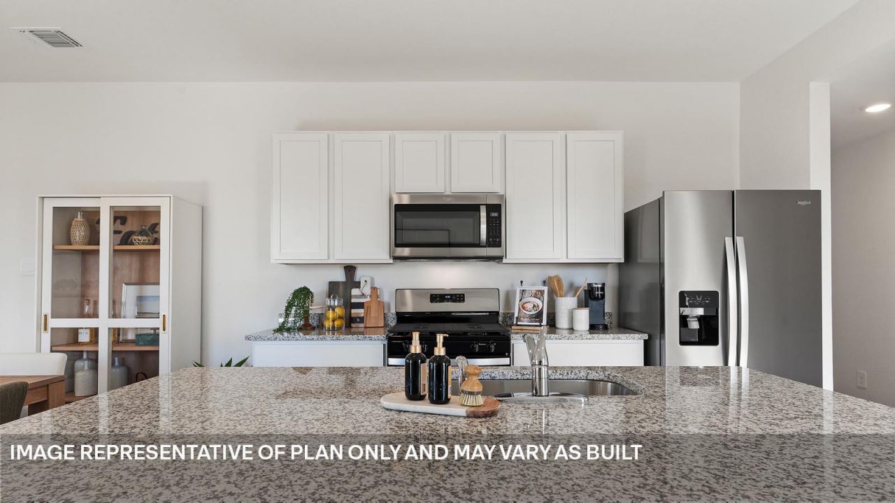 ESTIMATED COMPLETION JULY. Images representative of plan only and may vary when built. The Caroline floorplan is a premier choice for those seeking new construction homes in Leander, TX, offering a perfect blend of modern efficiency and Hill Country charm. As a standout single-story layout at Bar W Ranch, this 1,489-square-foot home features three spacious bedrooms and two bathrooms designed for seamless living.The heart of the home is an expansive open-concept area where a gourmet kitchen with stainless steel appliances and a central island overlooks the bright dining and living spaces. This configuration is ideal for entertaining or quiet family evenings in one of the most sought-after communities near Austin.Privacy is a hallmark of this design, with the secluded primary suite situated away from the secondary bedrooms. Owners can enjoy a private retreat featuring a walk-in shower and a generous walk-in closet. Beyond the interior, residents of Bar W Ranch gain access to resort-style amenities, including a pool, dog park, and hiking trails along the San Gabriel River.Each home also integrates the latest technology through the Americas Smart Home package, featuring a video doorbell, smart lock, and Honeywell thermostat to ensure your new Leander home is as intelligent as it is beautiful.