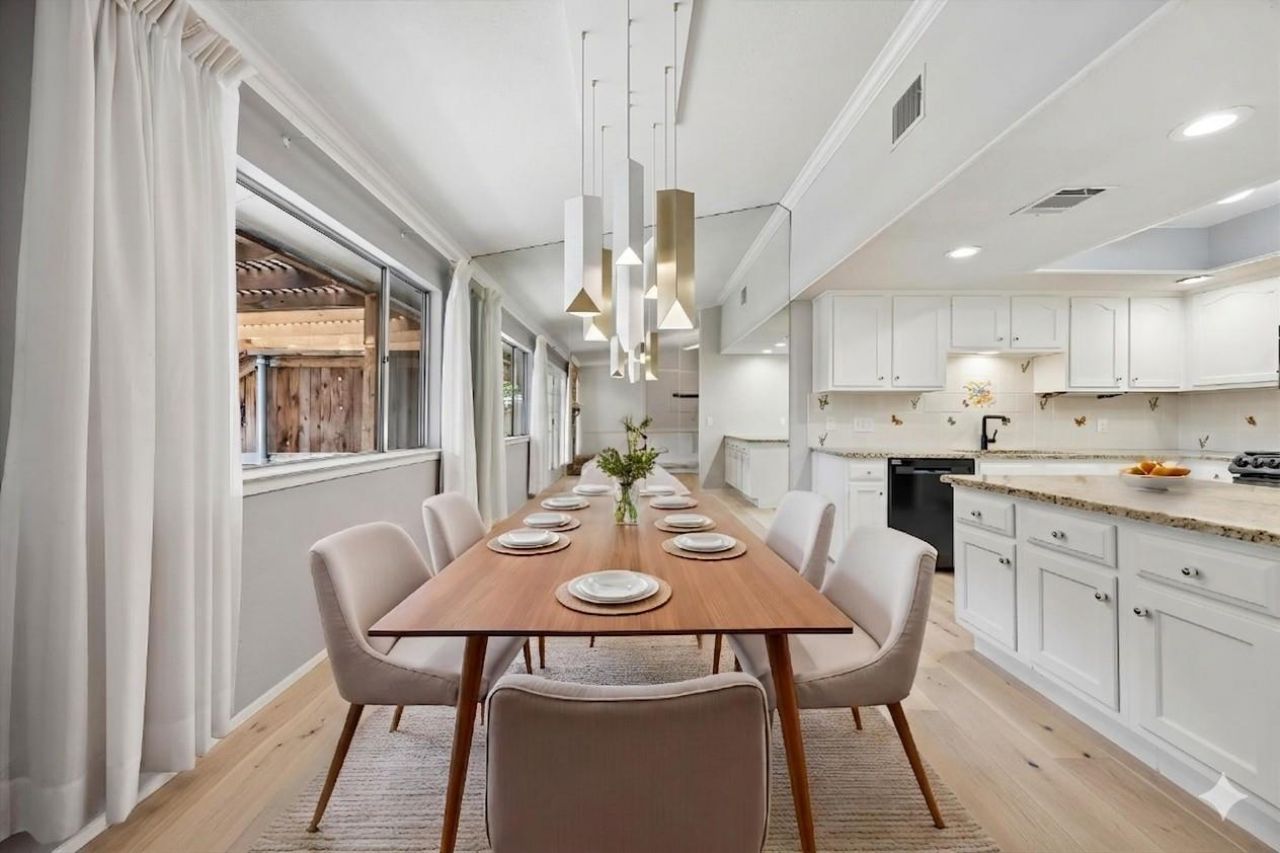 Coveted one-story condo in the Villas of Anderson Mill offering a true lock-and-leave lifestyle. Zoned to highly rated RRISD schools: Anderson Mill Elementary, Grisham Middle, and Westwood High. This charming home is full of potential, featuring a spacious living room with soaring ceilings and a cozy wood-burning fireplace set against a striking floor-to-ceiling brick hearth.The sunlit dining area flows seamlessly into the kitchen, complete with breakfast bar seating, a peninsula layout, gas range, and character-rich retro cabinetry. The generous primary suite boasts vaulted ceilings, a private ensuite bath, and its own secluded patio. Two additional bedrooms and a shared secondary bath provide flexible space for guests, office, or hobbies.Step outside to an oversized back deck shaded by a wood pergola, perfect for relaxing or entertaining. HOA dues simplify ownership by covering exterior maintenance, structural insurance, common areas, and irrigation water.Residents enjoy beautifully maintained grounds, a community pool, and direct access to scenic walking trails along the El Salido Greenbelt just behind the neighborhood. Ideally located minutes from the North Austin Tech Corridor, major employers, Lakeline Mall, and a wide array of dining, shopping, and entertainment. Outdoor enthusiasts will love the nearby trails at Brushy Creek and St. Edwards Park. With easy access to 620 and 183 and just a short drive to Lake Travis, this home offers both convenience and lifestyle.