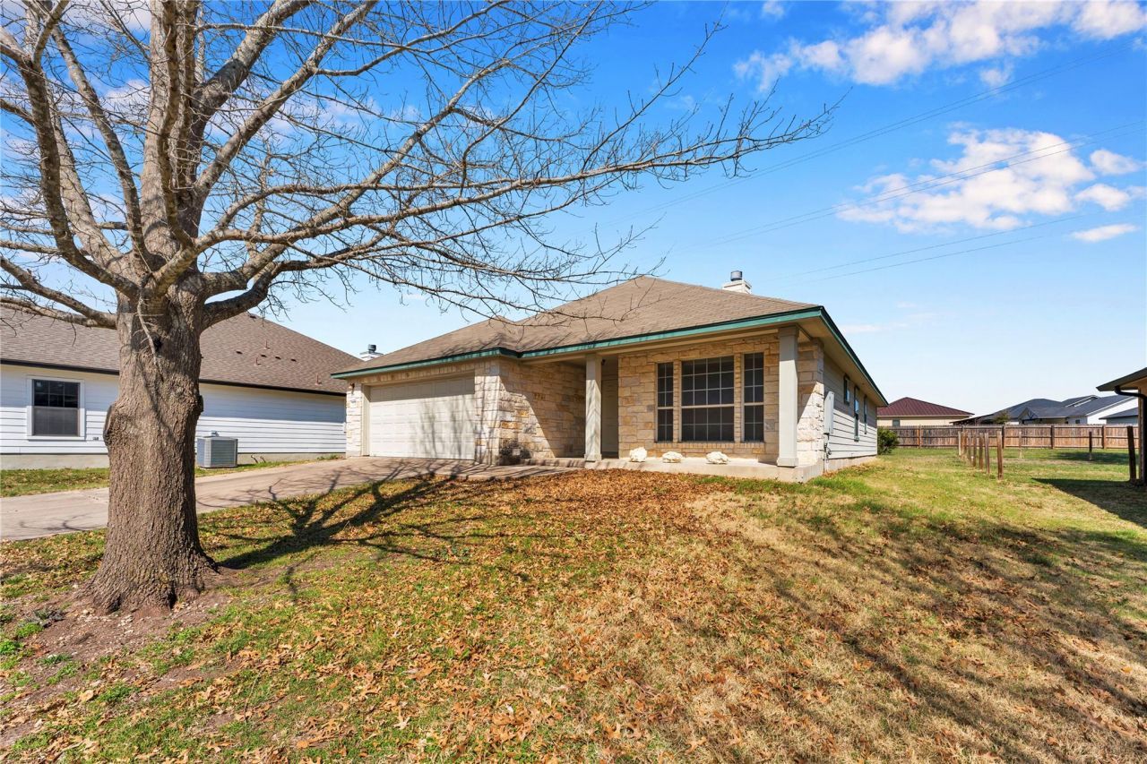 Charming single-story home located on a quiet cul-de-sac in Burnet. This well-maintained property features an open floor plan with 9 ceilings, creating a bright and spacious living area perfect for everyday living and entertaining. The kitchen offers custom cabinetry, tile backsplash, and a convenient breakfast bar that opens to the living space with a cozy fireplace. The split-bedroom layout provides privacy, while ceiling fans and thoughtful trim work add comfort and style throughout. Situated on a generously sized lot with a two-car garage and located close to schools, shopping, and dining, this home offers both convenience and small-town charm.