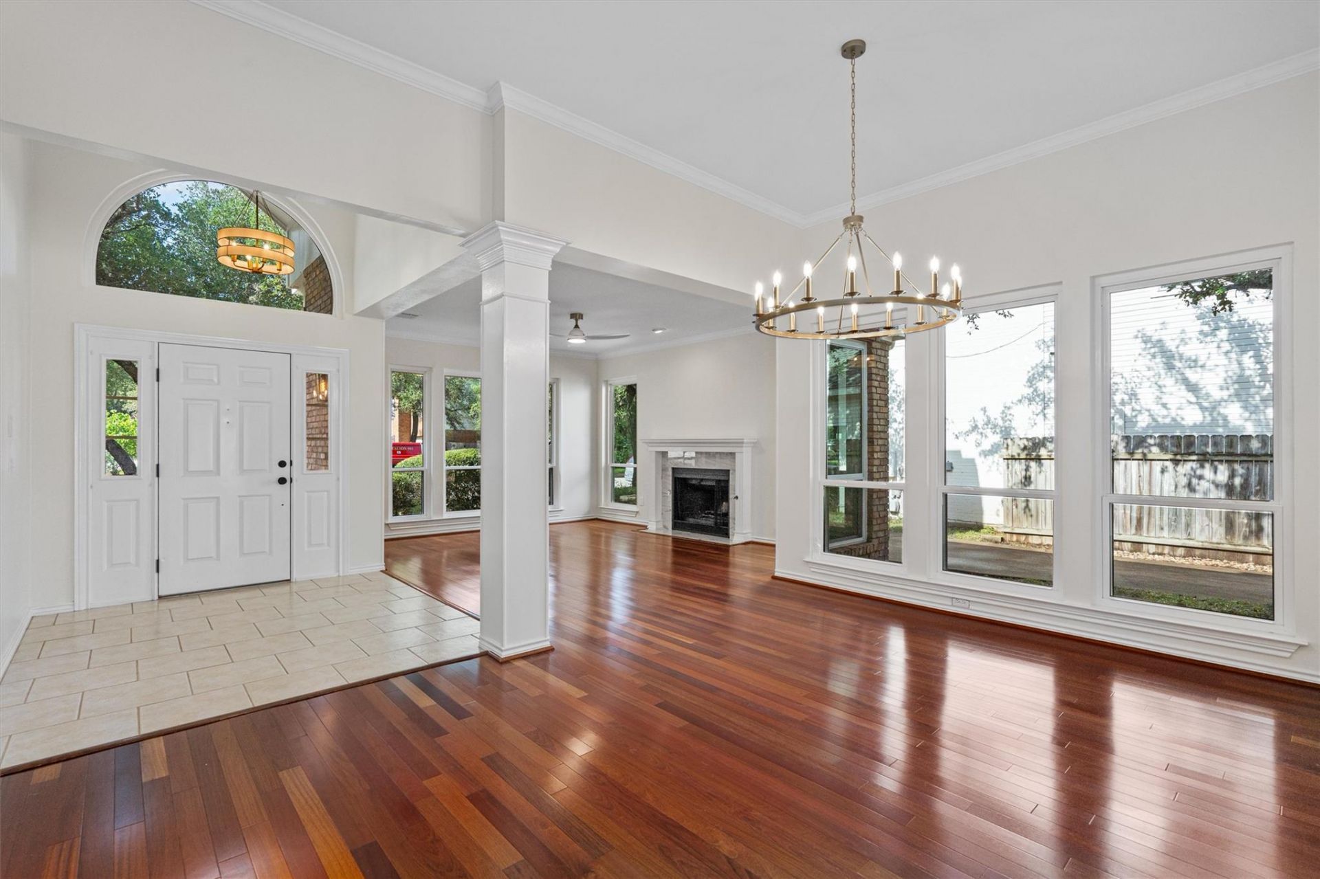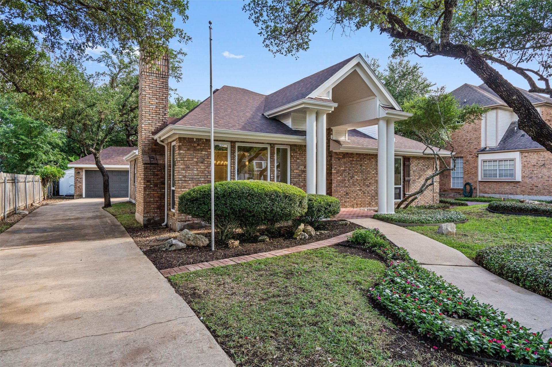This beautifully updated single-story home in the peaceful Shady Hollow community is a move-in-ready gem featuring soaring high ceilings, abundant natural light, a living room fireplace, and excellent curb appeal with mature trees and a pond view. The spacious primary suite stands out with a double-sided fireplace that opens to a spa-like bath complete with its own fireplace by the tub. Situated on a tree-lined street, the home offers quick access to MoPac, I-35, Southpark Meadows, and nearby parks including Bauerle Ranch and Mary Moore Searight Off Leash Dog Park. Shady Hollow HOA amenities enhance the lifestyle with a large community pool and wading pool at Capistrano Park, multiple tennis and basketball courts, playgrounds and playscapes, picnic areas with barbecue grills, greenbelt nature trails, and the David C. Ellis Community Center. The center provides reservable meeting rooms with kitchen facilities, making it ideal for parties, events, and family gatherings. You're minutes from favorites include Desano Pizzeria, Juiceland, Maudie's Hacienda, Costco and HEB. This home delivers comfortable living and entertaining in a highly desirable Southwest Austin neighborhood.