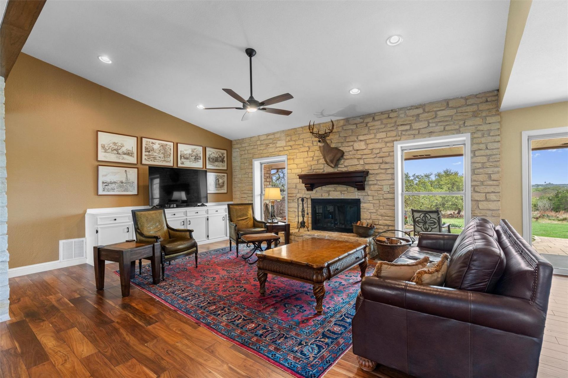 Looking for privacy, irreplaceable views, and an unbeatable Georgetown location? This beautiful home on an expansive 3.39 lot checks every box. Set in an established neighborhood with no HOA, this charming home located on a quiet cul-de-sac offers incredible space, mature trees, and a truly breathtaking and rare backdrop as it backs to the San Gabriel. With endless potential, the expansive backyard is ready for whatever you envision?whether its a casita, picnic area, garden, workshop, or open space to roam and raise animals. Take in stunning Hill Country views from the large covered patio, or follow the extended stonework patio and walkway to the fenced quarter-Olympic-sized lap pool and hot tub. Inside, an open floor plan filled with natural light highlights gorgeous wood floors, while the spacious living area?anchored by a beautiful stone fireplace & serene views of the backyard?flows seamlessly into the dining area & kitchen, where youll find concrete countertops, beautiful light wood cabinetry with pullout drawers, stainless steel appliances, & a convenient pantry. The large primary suite offers an ensuite with dual vanities, a frameless walk-in glass shower, & a generously sized walk-in closet with custom built-ins. Two additional bedrooms provide flexibility for guests or a home office?each with its own closet, including one with built-in shelving?& share a full bath, along with a convenient half bath. A dedicated laundry room with built-in cabinetry & a nearby room ideal for additional storage adds everyday practicality. Complete with a spacious shed and electric dog fence, this property blends beauty, privacy, and endless potential. Located just minutes from downtown Georgetown, Wolf Ranch Shopping Center, HEB, Walmart, Lake Georgetown, hospitals, & countless shopping, dining, & recreation options, this home also offers easy access to I-35 & State Highway 29 for convenient commuting.