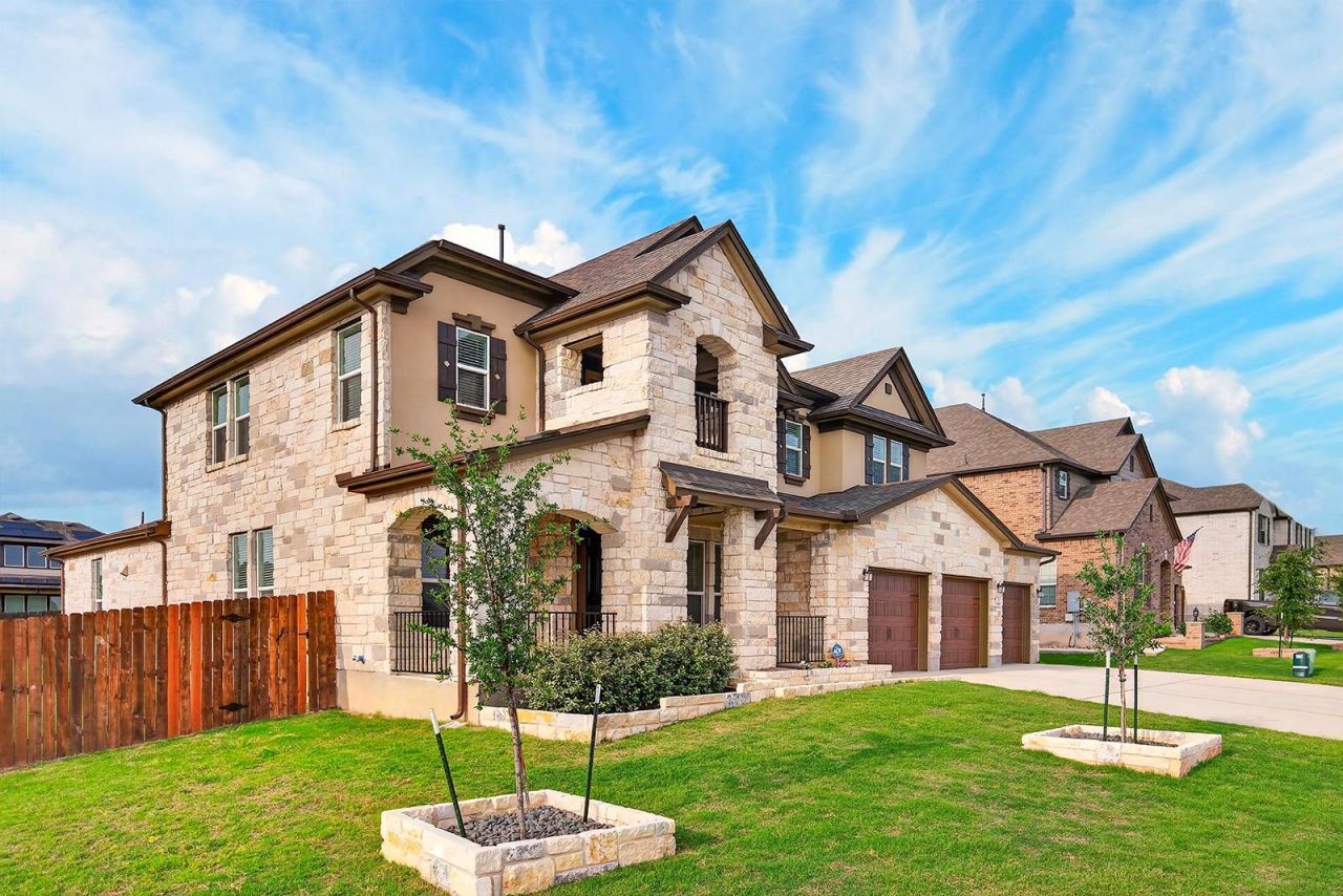 This stunning residence is situated on a 70-foot wide homesite corner lot and includes a three-car garage, all set on a spacious 12,000 square foot lot. The property features 5 bedrooms and 4 full bathrooms, complemented by a high ceiling floorplan design in the desirable Salerno community, nestled in the luxury Hallmark section on a premium corner lot! Ideally positioned near the borders of Hutto and Georgetown, with easy access to I-35 and SH-130 for a seamless commute to major employers like Samsung Electronics, Tesla, and Apple Inc..This beautifully maintained 3-year-old home features soaring ceilings, an open layout flowing into the family room, 4 bedrooms plus a dedicated office, and a spacious loft with double doors?perfect for work or play.Enjoy a large private backyard with brick accents and ceiling fans, ideal for relaxing or entertaining. A balcony at the front of the home offers a premium view directly facing the community amenities, including a sport court, playground, and pool. Conveniently located near H-E-B Plus!, Round Rock Premium Outlets, and Costco in both Georgetown and Cedar Park. Schedule your private tour today!