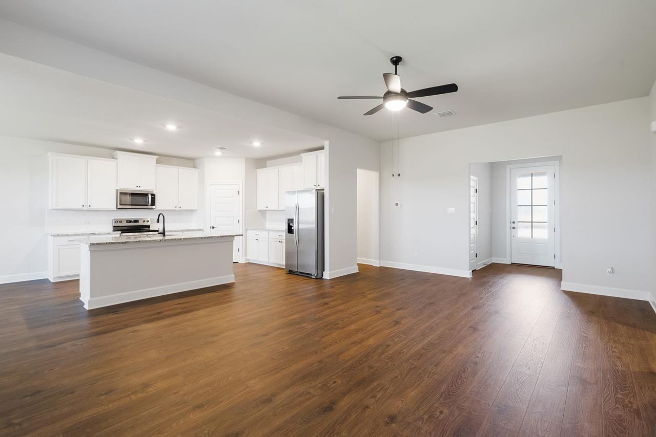 The Leland by LGI Homes is a three-bedroom home filled with designer upgrades and features including an exceptional island, beautiful granite countertops and stainless-steel appliances in the kitchen. A spacious walk-in pantry also provides room for the whole familys favorite snacks and food. An additional room can be used as a guest room or as a flex space for a study or office. The master bedroom is tucked in the back of the house and is connected to the luxurious master bath that contains two walk-in closets and dual sink vanity. Throughout the home four linen closets are strategically placed to keep towels, bedding, and household supplies neatly tucked away. With storage solutions in every corner, this home is as functional as it is comfortable!