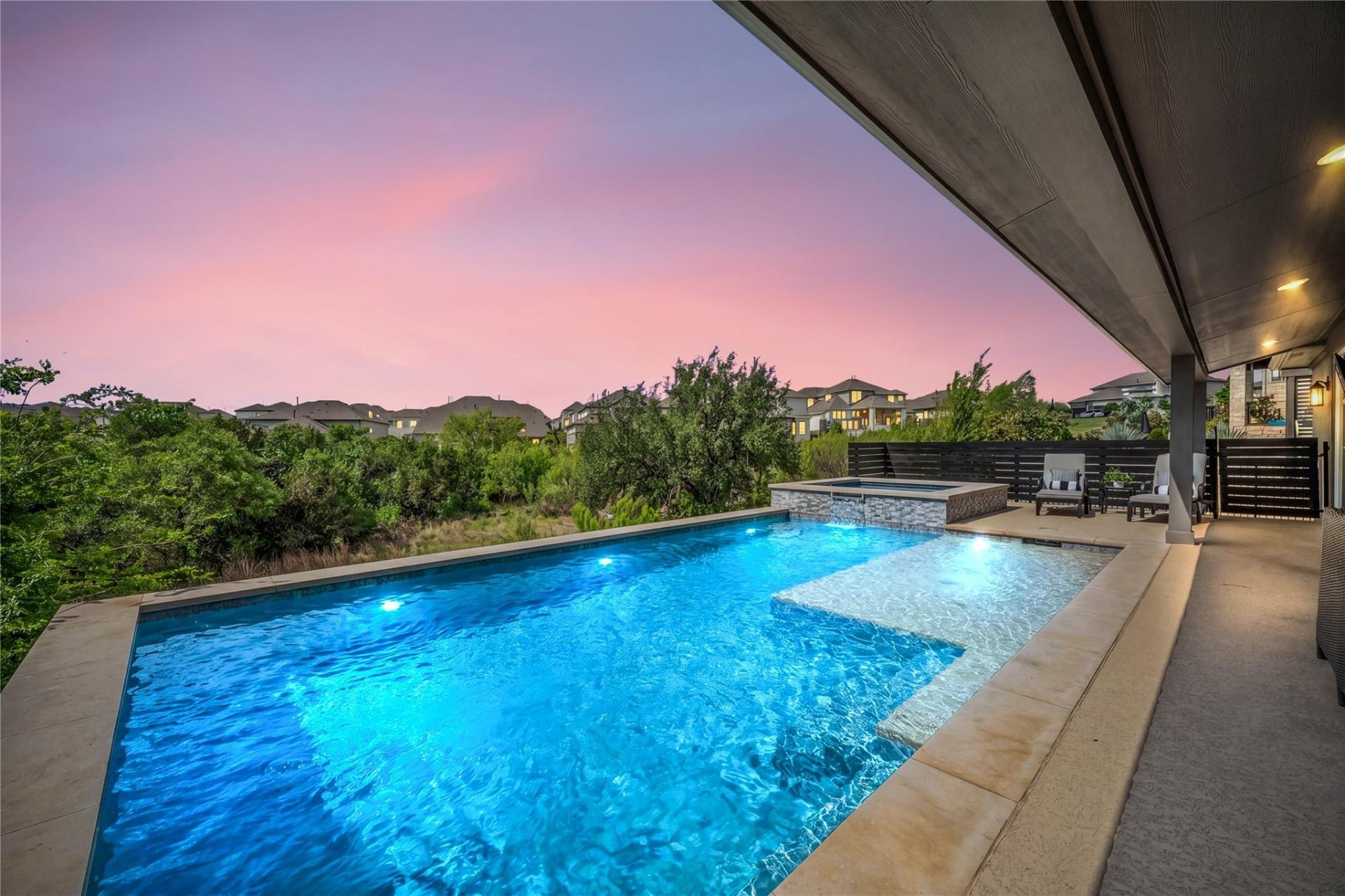 Finding a Rough Hollow single-family home with 5 bedrooms and 4.5 bathrooms that backs directly to a greenbelt is rare, but finding one with this level of backyard detail is on another level. This isn't your standard neighborhood lot; its a private ridge-side retreat where you can spend your weekends at the Rough Hollow Yacht Club, exploring the Highland Village water park, or hiking the miles of trails that make this community feel like a permanent vacation in the Hill Country. What makes this floor plan so special is how easy it is to live in. Most of the home is on the first floor, including 4 of the bedrooms. If you have parents moving in or frequent overnight guests, the private guest suite is a game-changer; it has its own sitting area and ensuite bath, so they have a space that feels like their own home. At the front of the house, two more bedrooms share a Jack-and-Jill bath, while the primary suite is tucked away at the back for total quiet. Its a spacious room with a sliding door that lets you step right out to the pool. The ensuite features separate vanities, a soaking tub, step-in shower and 2 walk-in closets. The living area is stunning with a fireplace and custom-built entertainment center with bookshelves that give the room a welcoming ambiance. In the kitchen, the quartz topped island is where everyone ends up hanging out. With white shaker cabinets, double ovens, and a gas cooktop, its a great setup for big holiday meals. Because of the way the home sits on the greenbelt, you get these views of the hills through every window along the back of the house. Upstairs is essentially a bonus level with a game room and the 5th bedroom with a full bath. The outdoor space is the highlight of the property, following over $350k in custom upgrades. The back patio holds a full outdoor kitchen, leading to a custom pool and spa that overlook the quiet greenbelt. Zoned for Lake Travis ISD plus minutes from the Hill Country Galleria and 25 miles to Downtown.