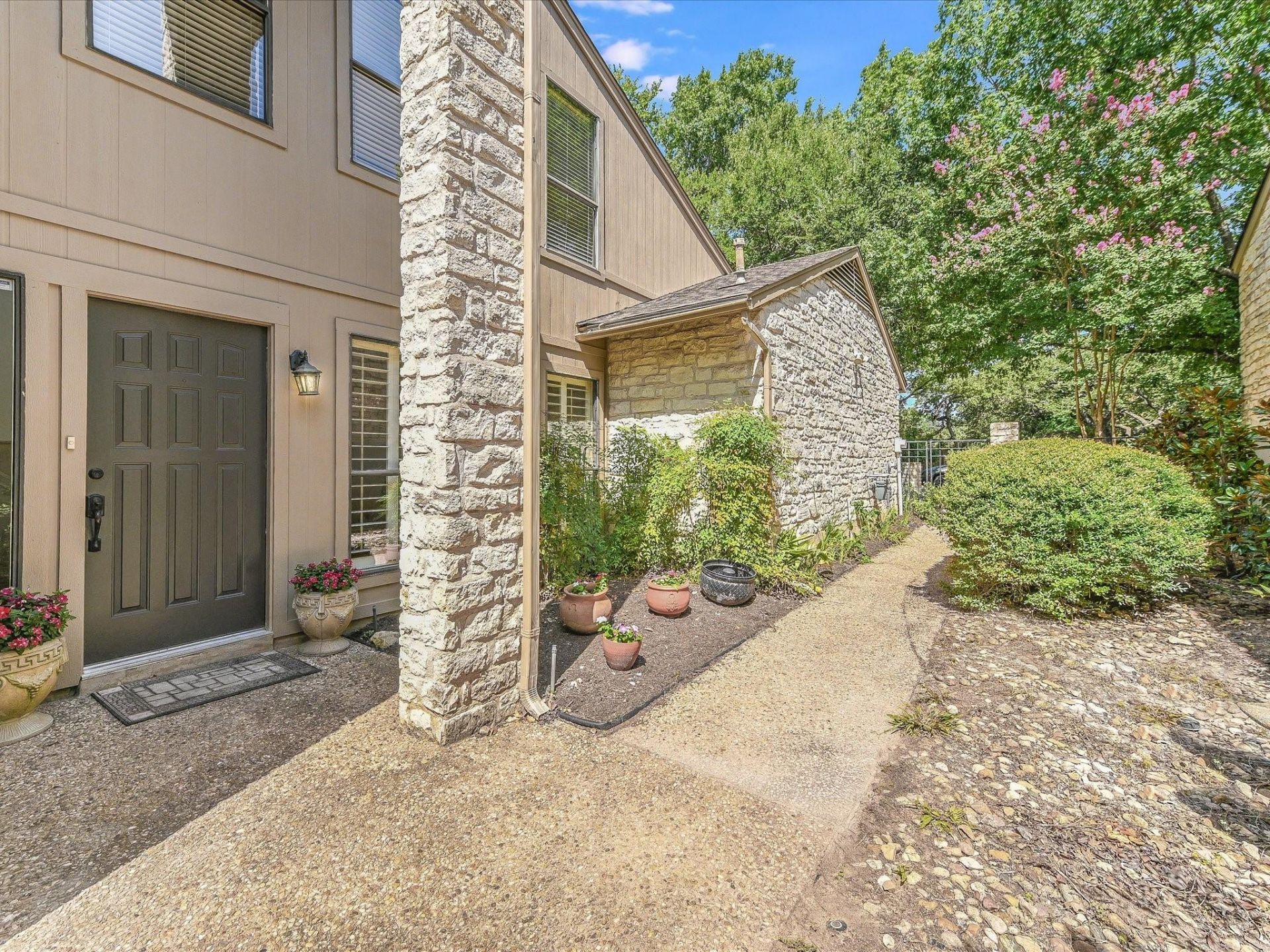 Well-maintained, free-standing townhome with no adjoining neighbors. Enjoy a quiet community with amenities, including pool, tennis/pickleball and clubhouse. Conveniently located close to restaurants, grocery stores and schools. Highlights include soaring ceilings, lots of natural light, and shaded backyard sanctuary. Master bedroom, large dining and living areas, spacious kitchen with adjoining laundry room are all downstairs. Two additional bedrooms, full bathroom and flex room are upstairs. Plenty of parking space with a 2-car garage, driveway and cul-de-sac.