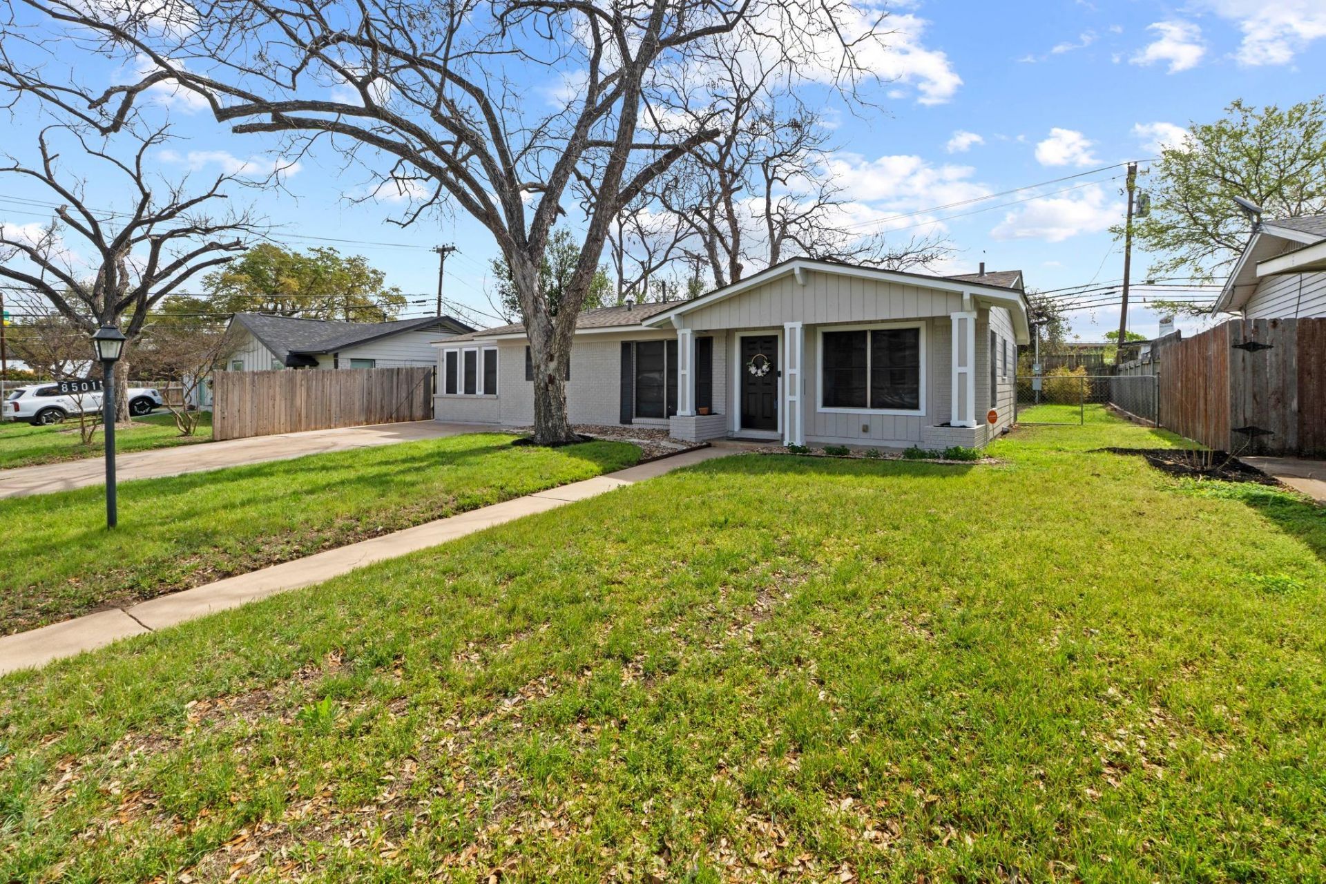 Welcome to 8501 Kromer Street ? a thoughtfully updated 3-bedroom, 2-bath home set on a large, flat lot with mature trees in an established Austin neighborhood. Recent improvements include a new roof, full interior and exterior paint, new carpet, new flooring in the game room and laundry, and major electrical upgrades with new service and sub-panels?offering both style and peace of mind.Inside, youll find durable wood laminate flooring, a warm wood kitchen with gas cooktop, and built-in cabinetry that adds character and functionality to the living space. Two spacious living areas plus a separate game room?currently staged with arcade games?provide flexible space for everyday living and entertaining.The backyard offers room to relax and play, complete with a storage shed for added convenience.Lovingly held in the same family for generations, this home carries a sense of history and care thats hard to find. Now, its ready for its next owner to make it home.