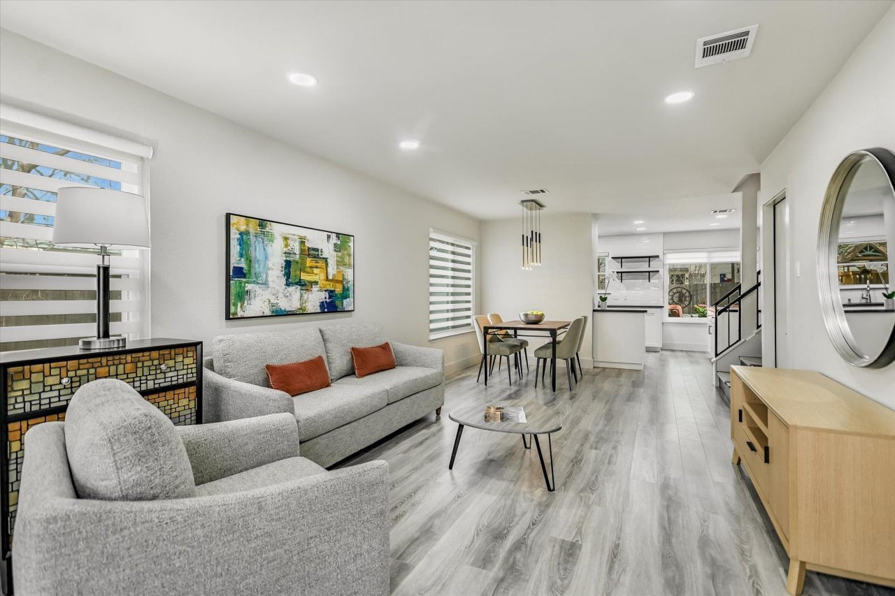 A beautifully renovated 2-story home in South Austin is waiting for you! From the moment you enter, you will feel the warmth and coziness of this home. The spacious living/dining room with an abundance of natural light is a charming space for entertaining or simply relaxing with your family or friends. The kitchen, with stainless steel appliances, is just beyond the living/dining area. Adjacent to the kitchen is a 2nd living space with a fireplace that would make a splendid home office, playroom for the kids, or another room for casual relaxation. Upstairs are 4 bedrooms. The primary bedroom is very large and has an ensuite bathroom with a large walk-in shower, double sink vanity, and a spacious closet. The 3 additional bedrooms are well laid out, and one of the bedrooms has a roomy walk-in closet. Just out the back door is the play space for adults and kids. Whether you wish to relax on the deck beneath the grand oak tree or enjoy a cool respite from the Texas heat in the Cowboy pool, this is a delightful environment in which to get away from the pressures of the day. The kids also have a terrific space where they can enjoy swinging, sliding, or creating their own fun on the playscape. Something for everyone!