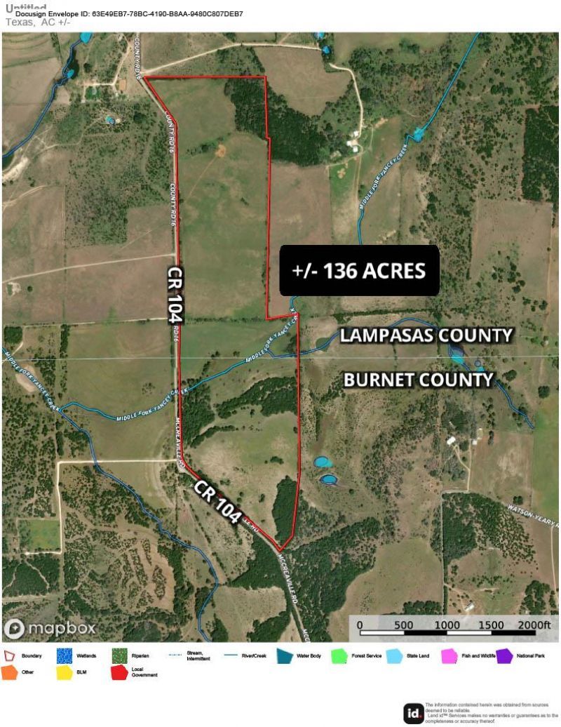 136-Acre Ranch in Lampasas & Burnet Counties ? Texas Hill CountryDiscover the perfect blend of natural beauty and versatility on this stunning 136-acre ranch, ideally located in the heart of the Texas Hill Country. Spanning to Counties: Lampasas and Burnet. This property offers a scenic mix of open fields and hardwood-covered terrain, with majestic trees including Pecan, Post Oak, Cedar and Live Oak.Property Highlights:¢ Diverse Terrain: A picturesque balance of dense hardwood tree cover and open pastures?ideal for both recreational use and agricultural operations.¢ Wildlife & Hunting: Abundant Whitetail deer, turkey, dove, and hogs make this property a prime location for hunting or wildlife observation.¢ Creek & Food Plots: A creek crossing and established food plots add to the ranchs appeal and functionality.¢ Accessibility: Approximately 1,800 feet of road frontage provides flexibility for access into the property or this property can be sectioned off into smaller tracts.Versatile Use Options:Whether you're seeking a weekend getaway, a dedicated hunting retreat, or a working cattle operation, this property is suited to meet a wide range of needs.Prime Location:¢ 15 minutes to Lampasas¢ 25 minutes to Burnet¢ 1 hour 10 minutes to Austin¢ 1 hour 35 minutes to Waco¢ 2 hours 15 minutes to Fort WorthEnjoy the tranquility of country living with convenient access to city amenities. This rare offering combines privacy, utility, and location?making it an exceptional opportunity in one of Texas most desirable regions.Sellers are open to subdividing and selling smaller tracts of about 30 acres each.